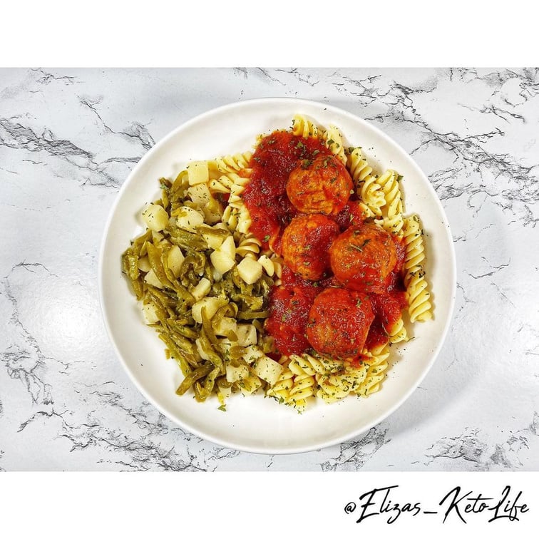 “My son wanted pasta so I decided to try this low carb pasta from @jazilupini and it was amazing. It tastes just like regular pasta that’s higher in carbs. It was definitely a hit. This is just regular sauce I whipped up. I added some bell peppers and chicken sausage balls. The net carbs for one serving of the pasta is 3g. It’s definitely something I would try again. I enjoy the texture being consistent with what I’m used to with regular pasta. 🤤”